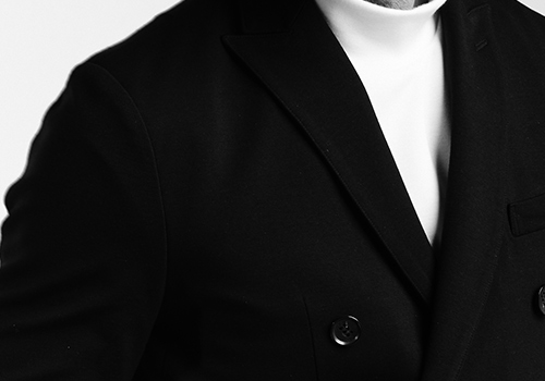 AKM秋冬定番のデュアルウォームSWING EASY SET-UP。今季は無地のみの展開で、フラップポケットが特徴的なダブルピークドラペルジャケットを新たにラインナップ。発熱効果のあるポンチ素材を採用し、一枚仕立てで軽量に仕上げながらもウォーム効果がある素材を採用することで、秋冬仕様へと昇華しています。ストレッチ性にも富んでいるので快適な着用感を保証します。釦は AKM 定番の本水牛六穴釦です。