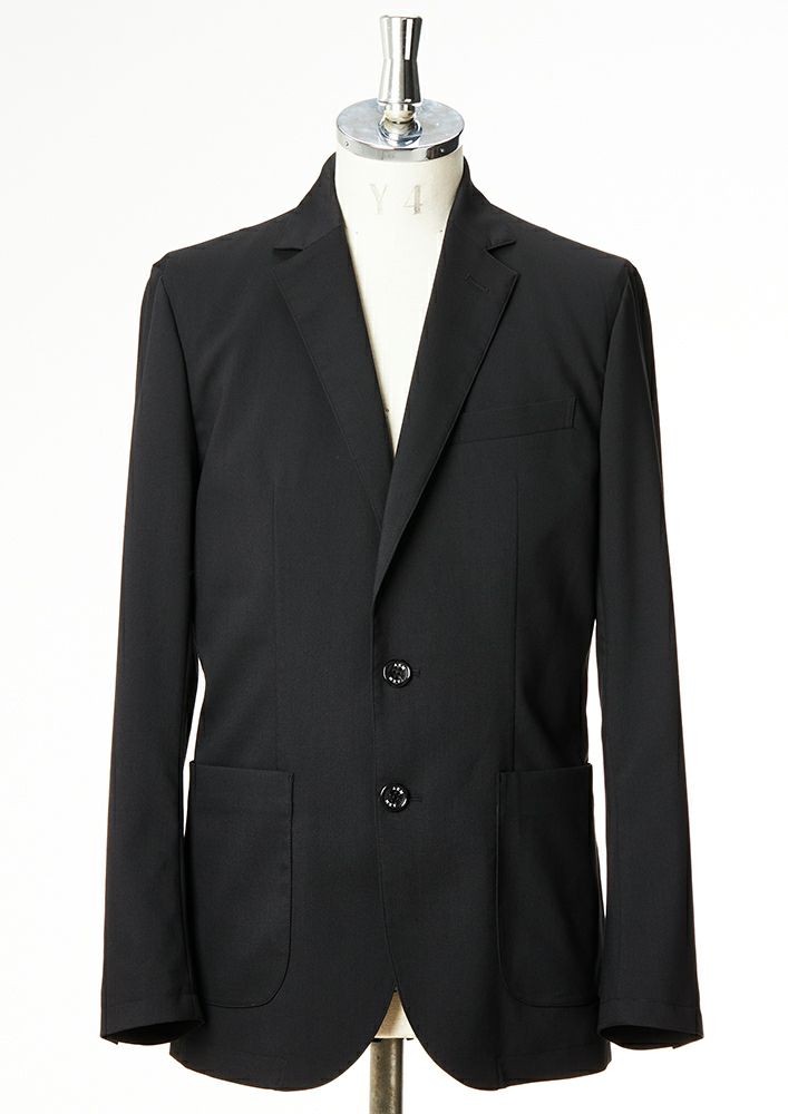 パッチポケットが特徴的なシングルノッチドラペルジャケットは総裏仕立てで身返しはお台場仕様と、より本格スーツのディテールを採用しています。