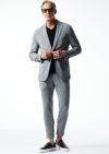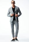 パッチポケットが特徴的なシングルノッチドラペルジャケットとトラウザーは定番のタイトストレート型とEASYテーパード型の2種をご提案します。