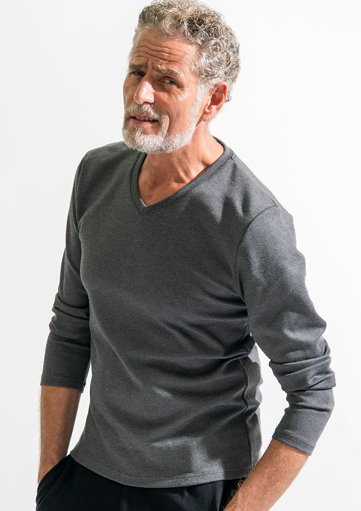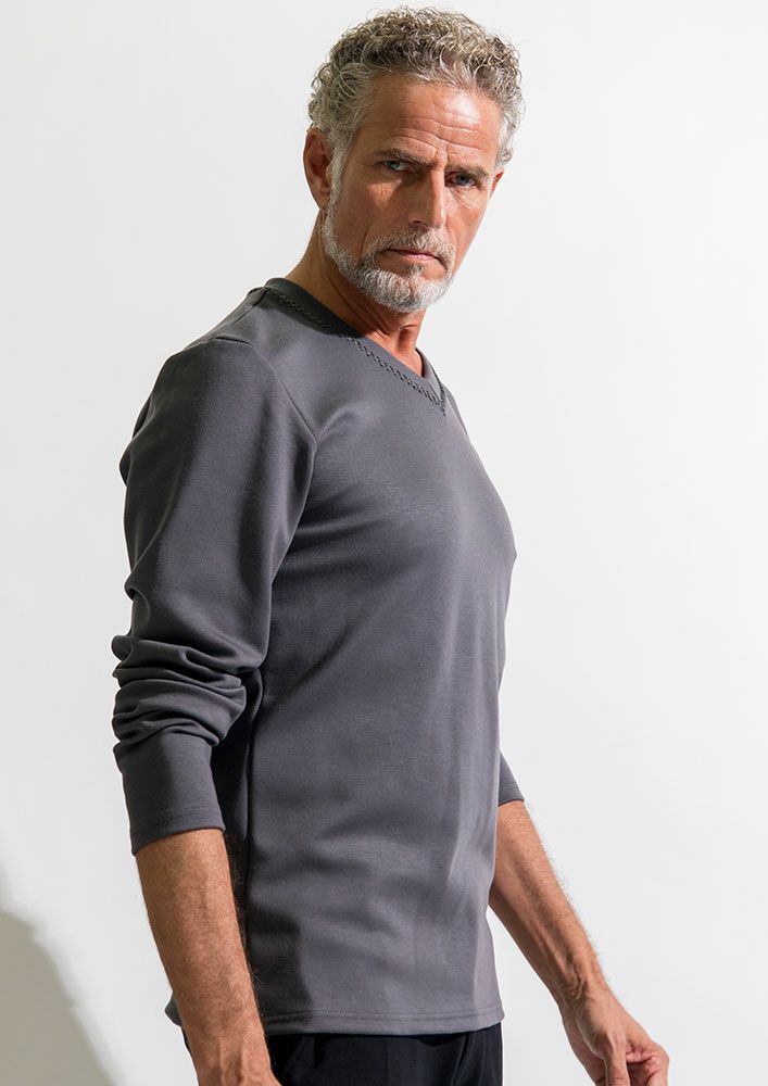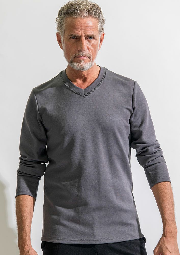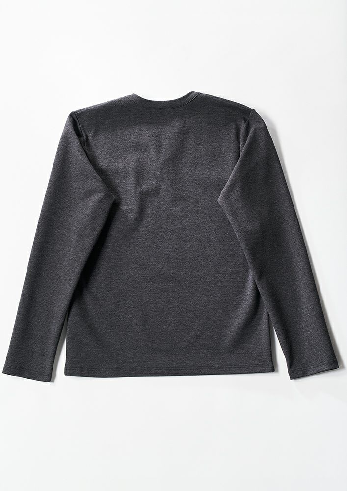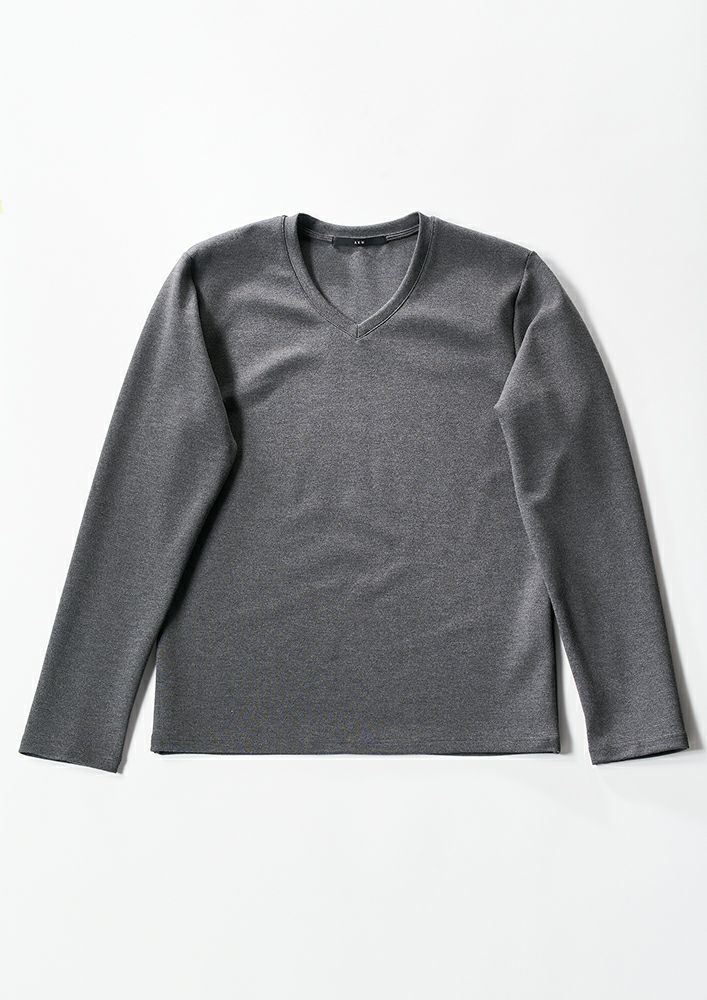 【AKM】DUALWARM MOIST PONTI L/S HAND STITCH V-NECK -GRAY-