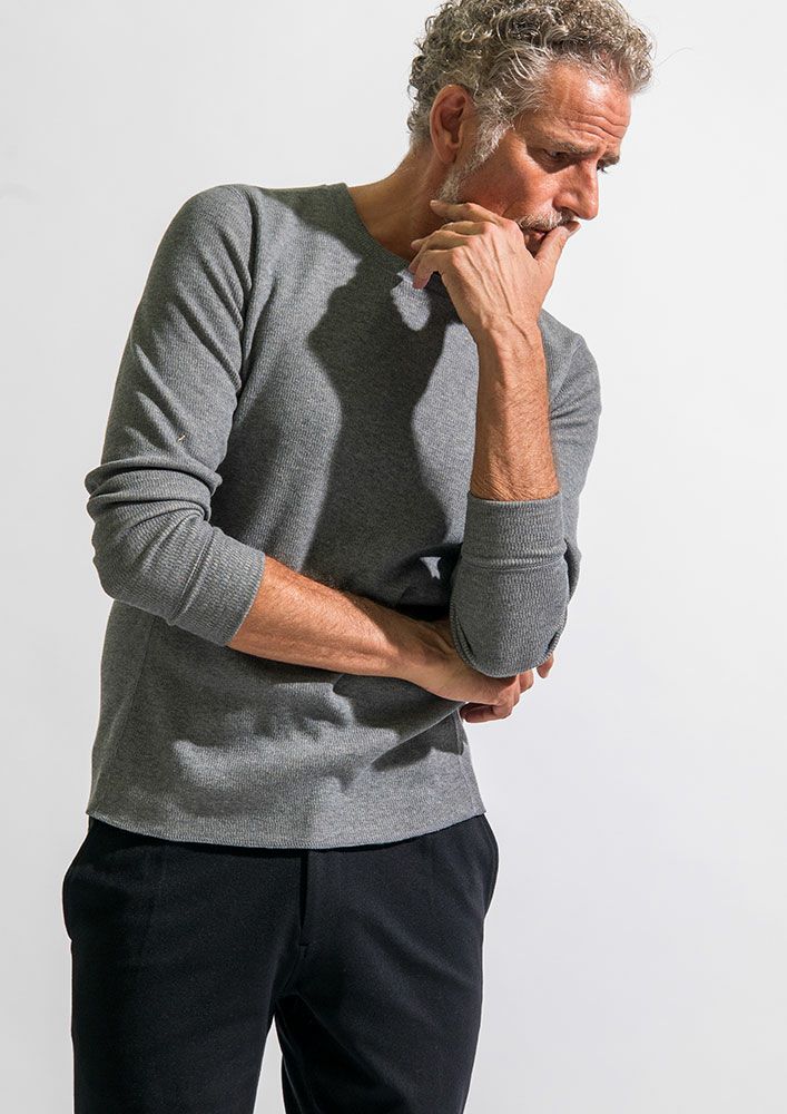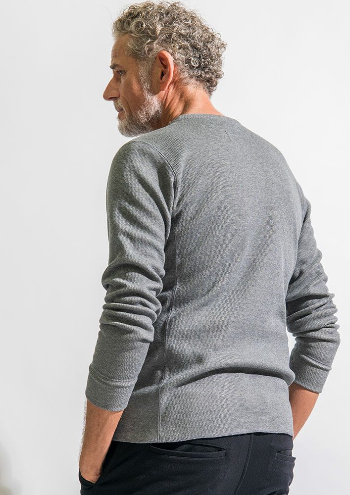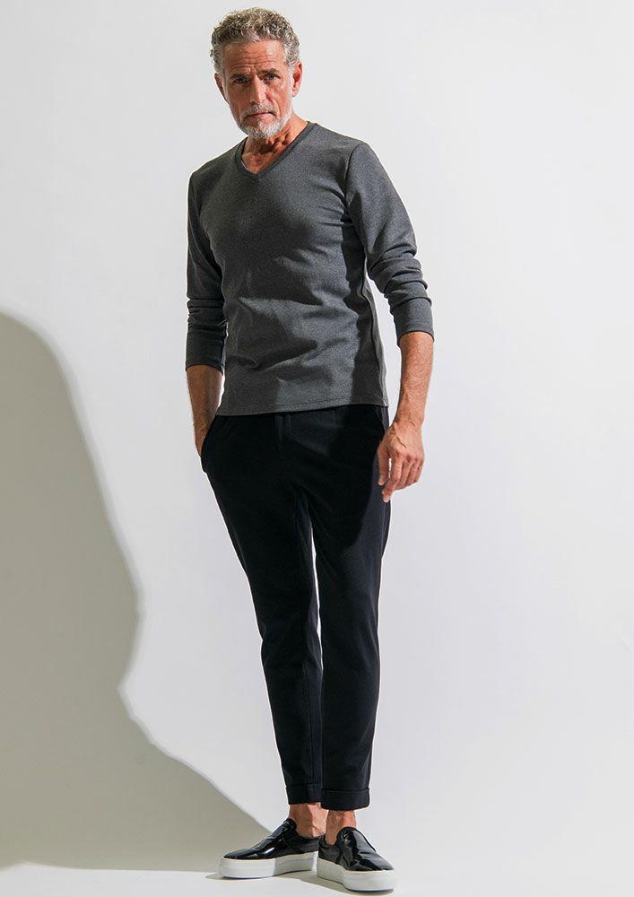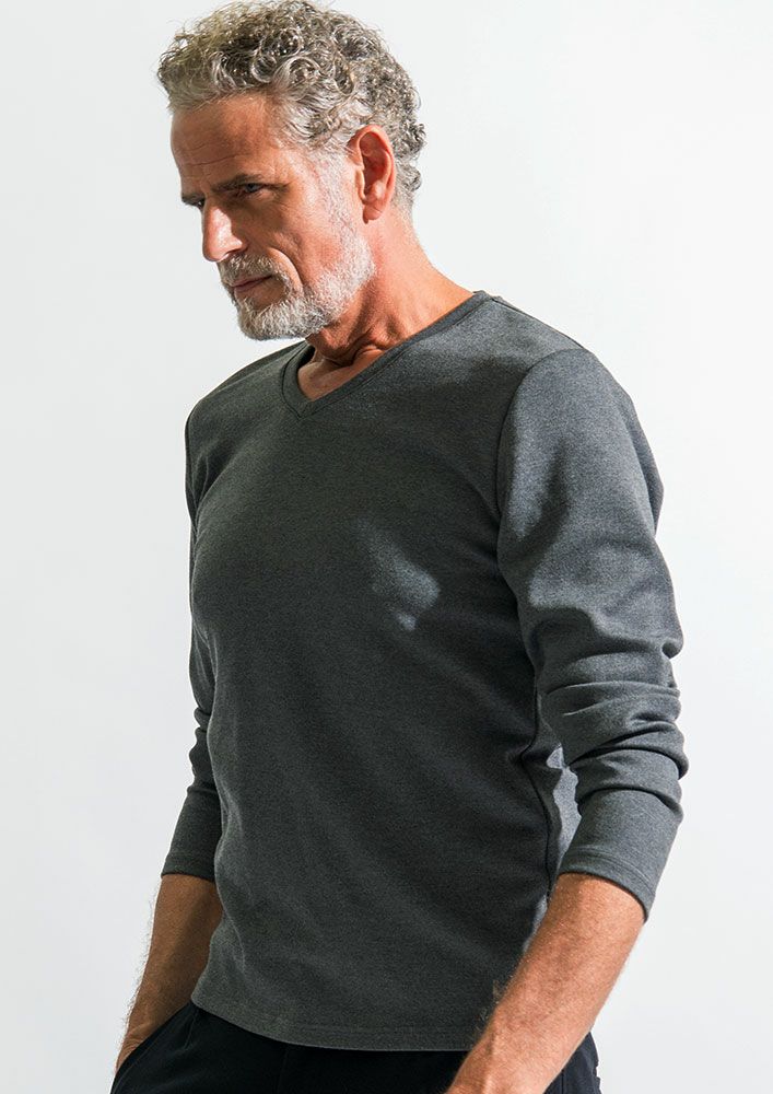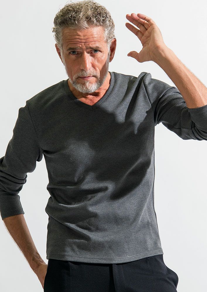 【AKM】DUALWARM MOIST PONTI L/S HAND STITCH V-NECK -GRAY-
