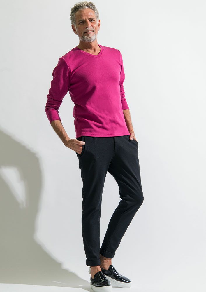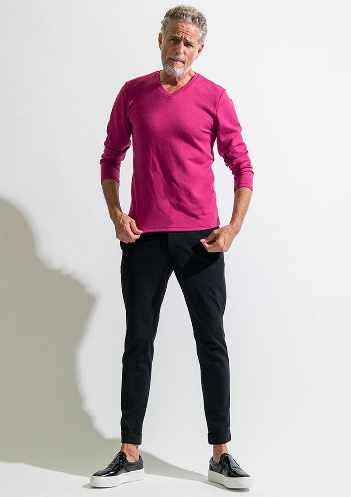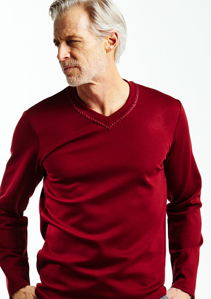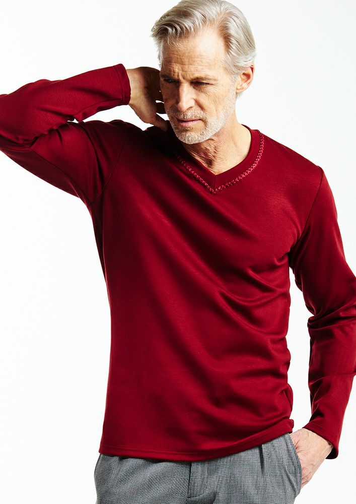 【AKM】DUALWARM MOIST PONTI L/S HAND STITCH V-NECK -RED-