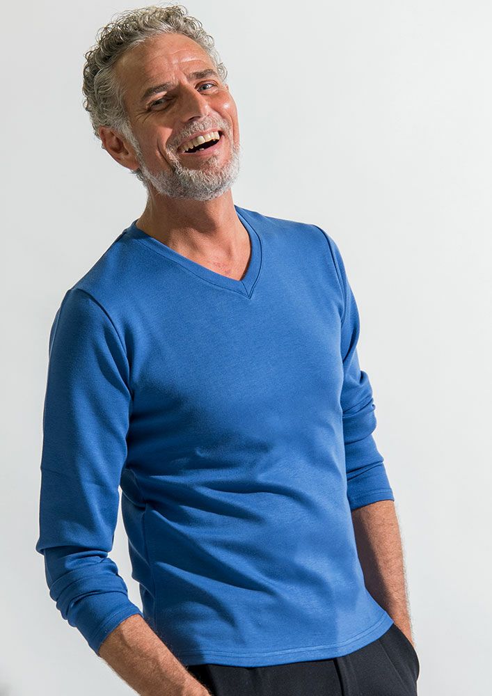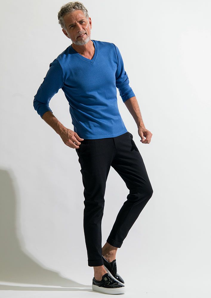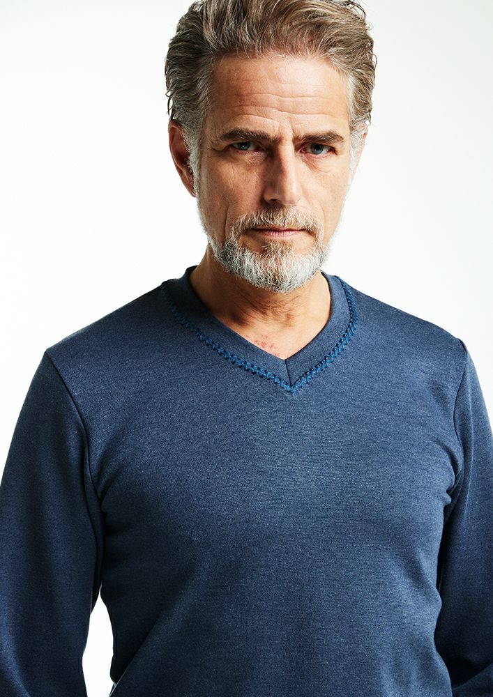 【AKM】DUALWARM MOIST PONTI L/S HAND STITCH V-NECK -INDIGO-