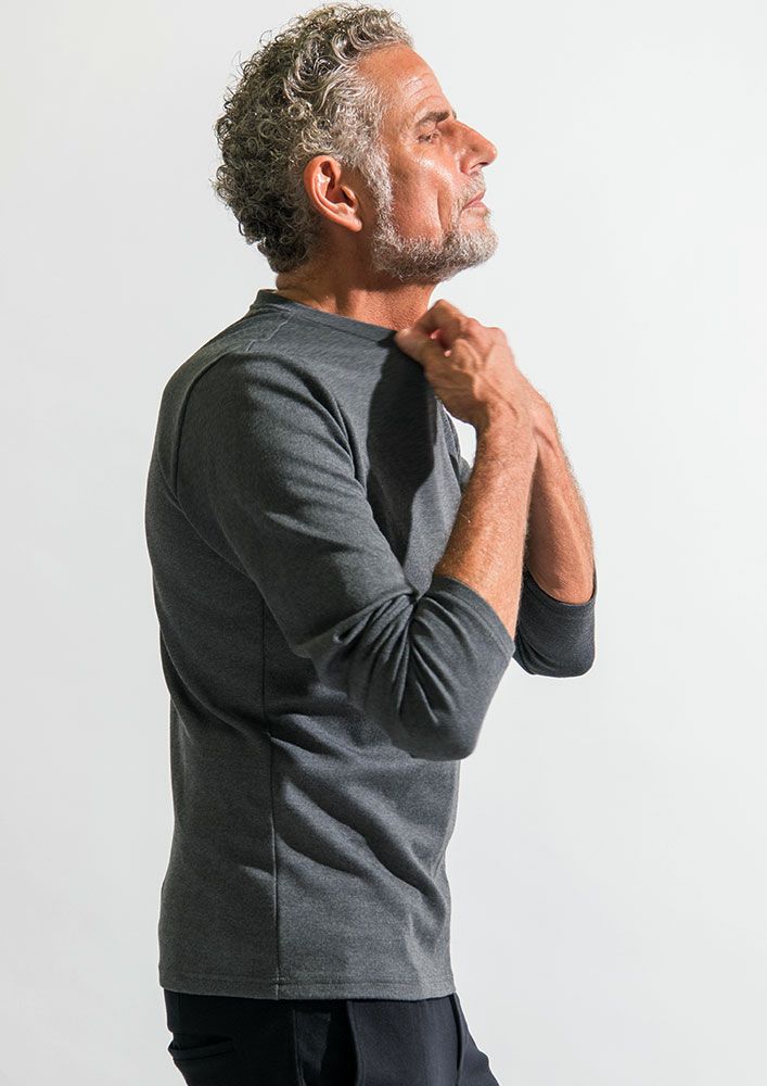 【AKM】DUALWARM MOIST PONTI L/S V-NECK -D.GRAY-
