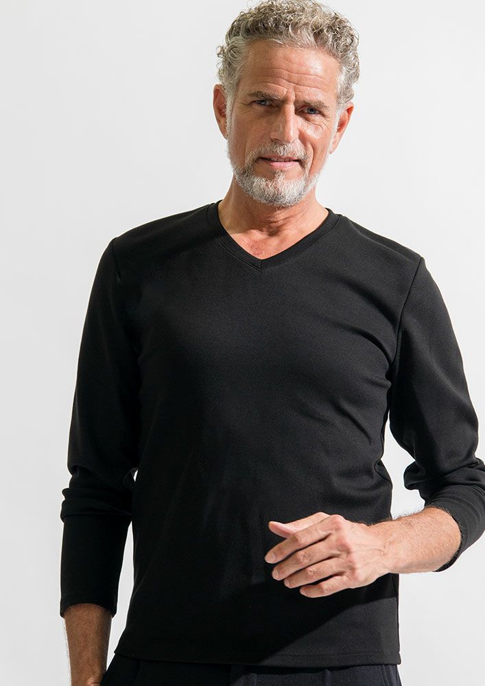 【AKM】DUALWARM MOIST PONTI L/S V-NECK -BLACK-