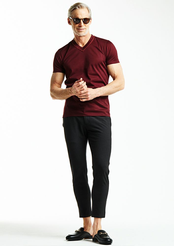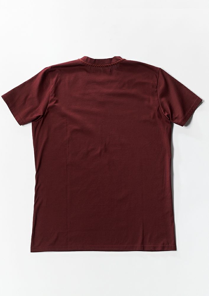 【AKM】SILKETE COTTON S/S HAND STITCH V-NECK -BURGUNDY-