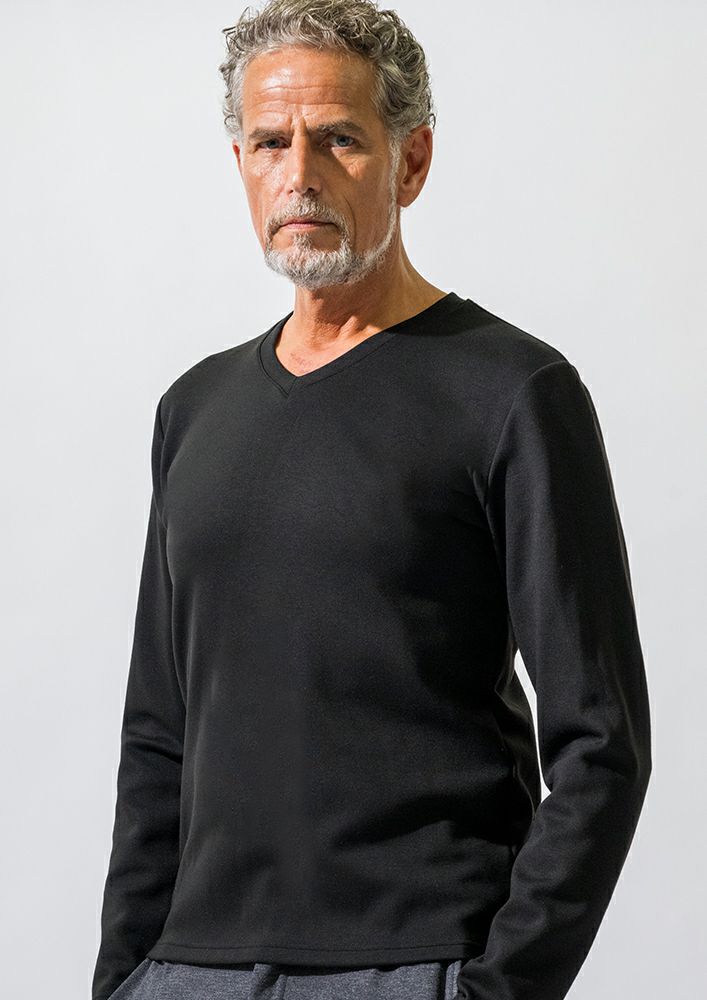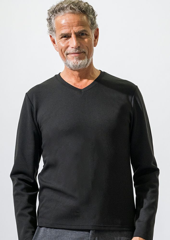 【AKM】 DUALWARM MOIST PONTI L/S V-NECK -BLACK-