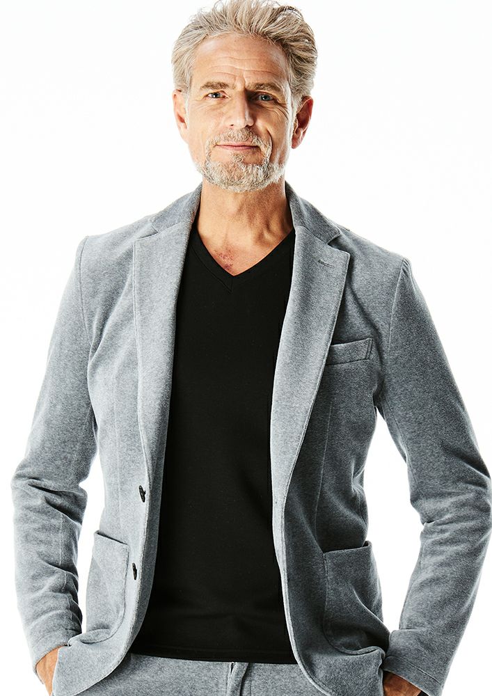 【AKM】 DUALWARM MOIST PONTI L/S V-NECK -GRAY BEIGE-
