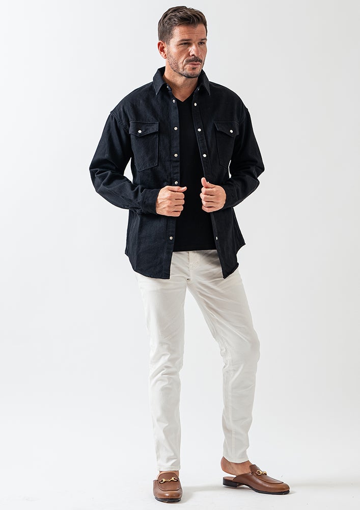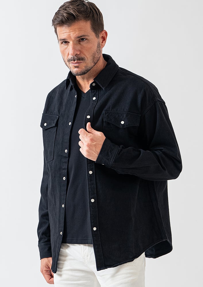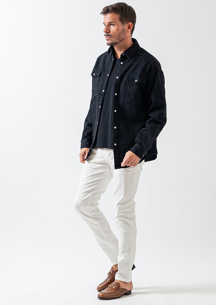 【AKM】 10.5oz COTTON DENIM DROP SHOULDER DENIM SHIRTS -BLACK-
