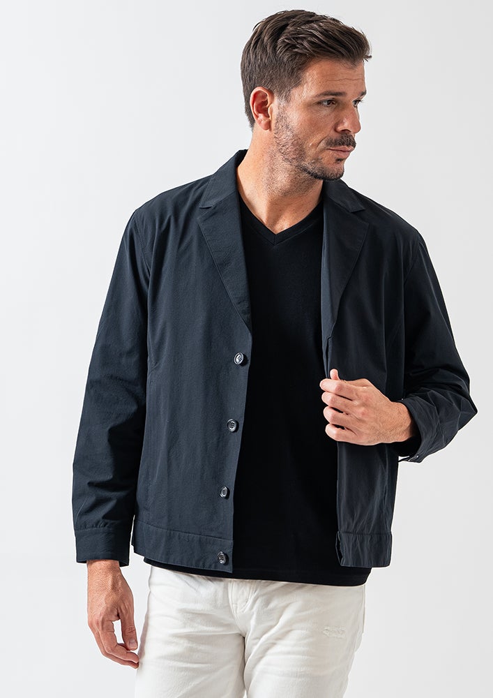 【AKM】 COTTON STRETCH SATEEN L/S BIG PLAIN -NAVY-