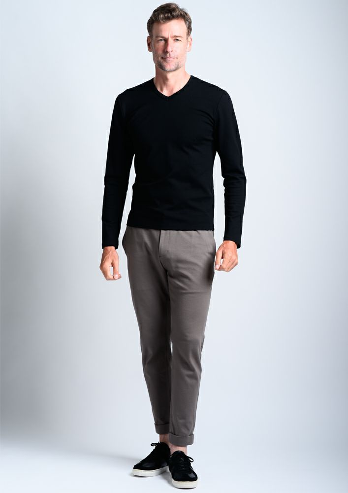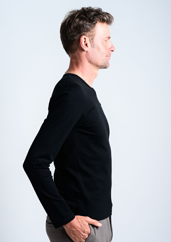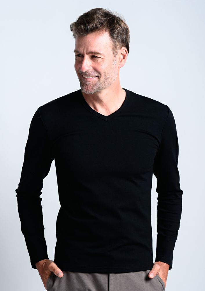 【AKM】L/S HAND STITCH V-NECK -BLACK-