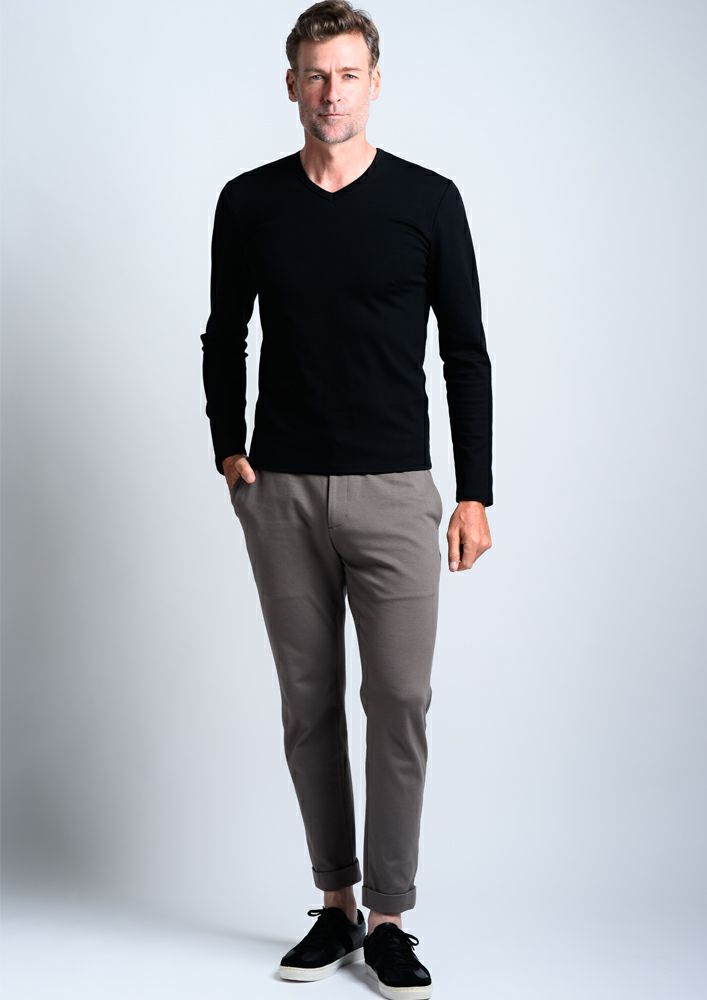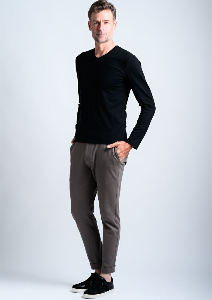 【AKM】BARE PONTI L/S V-NECK -BLACK-