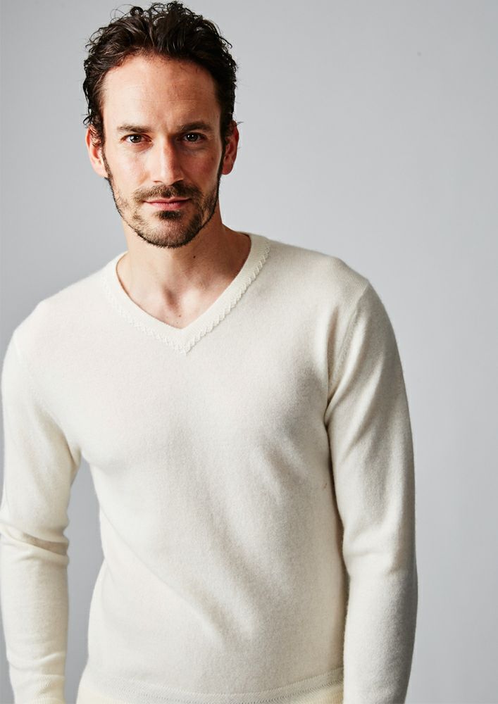 【AKM】BABY CASHMERE HAND STITCH V-NECK -WHITE-
