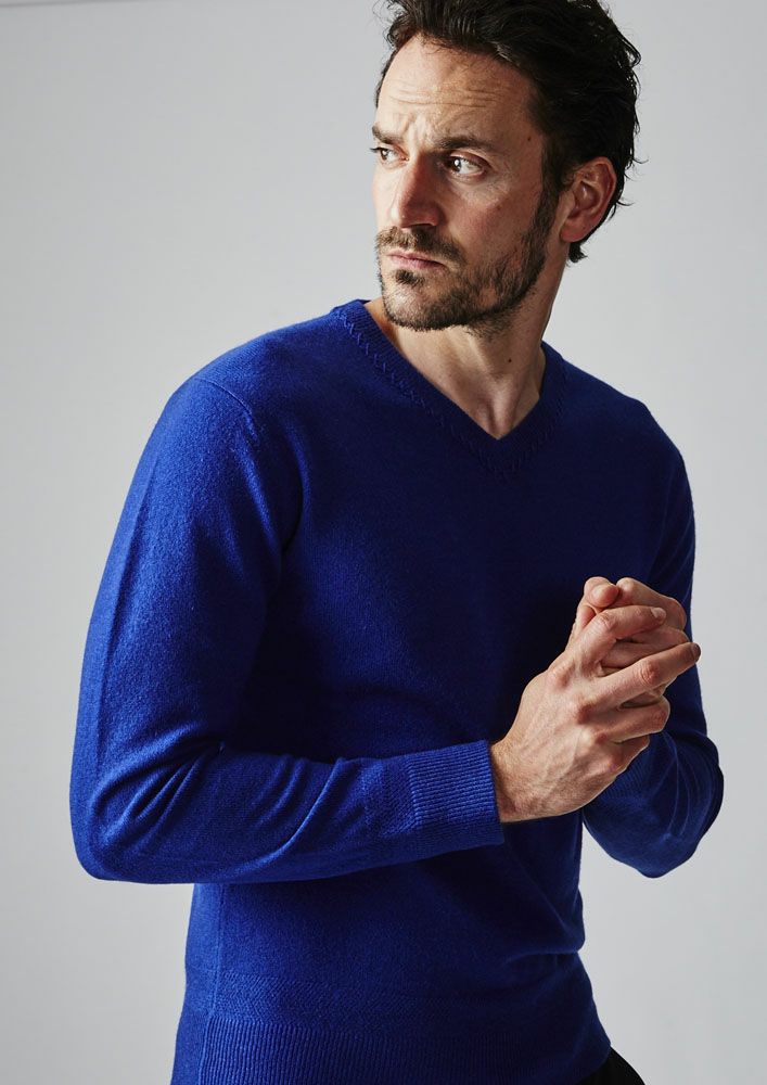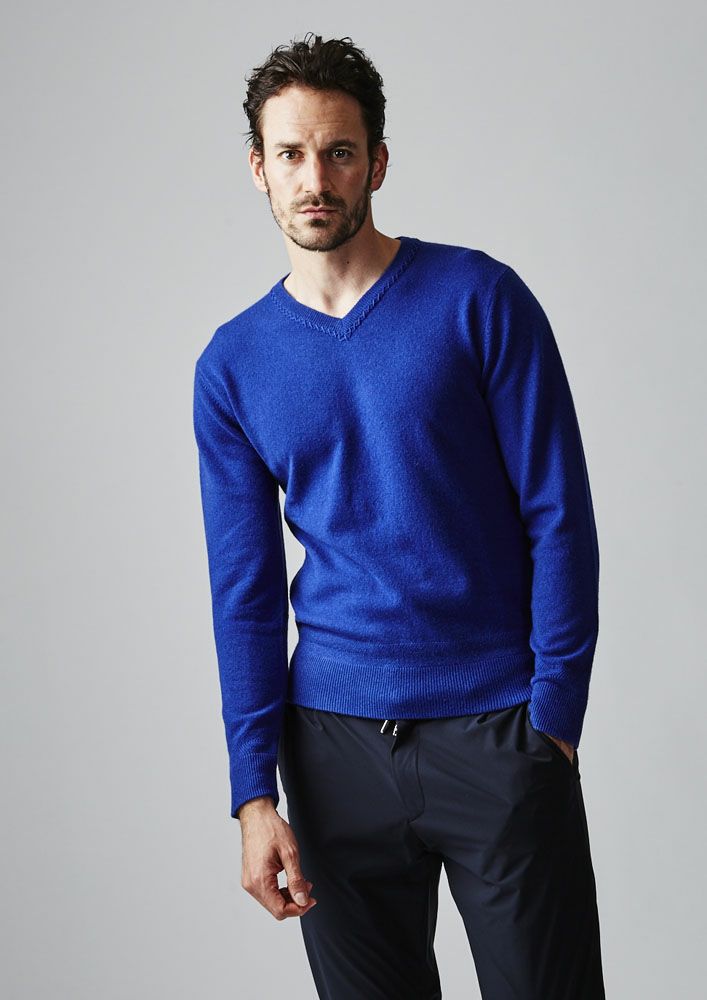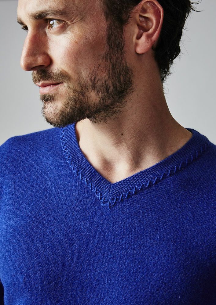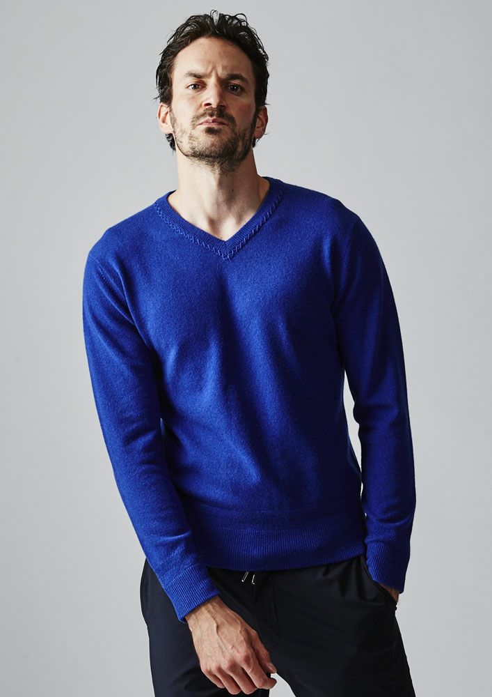 【AKM】BABY CASHMERE HAND STITCH V-NECK -BLUE-