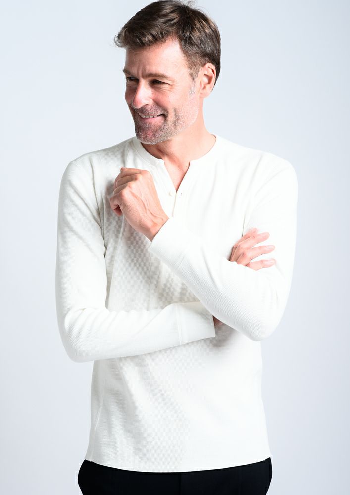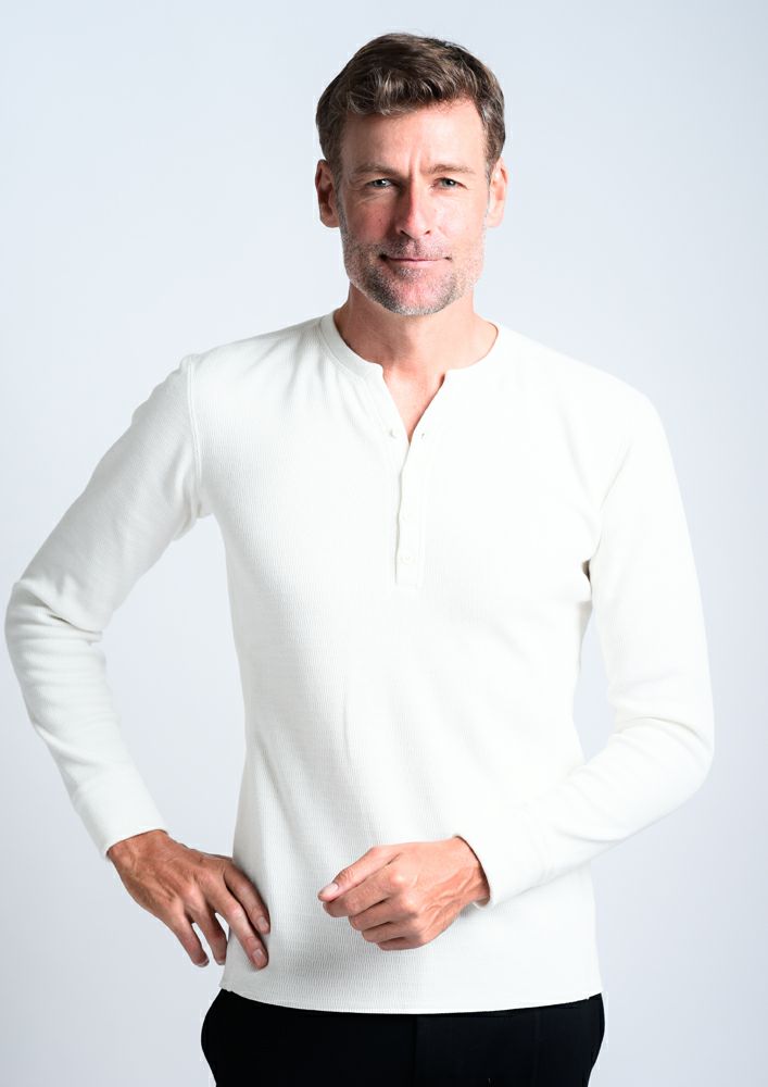 【AKM】THERMAL BOMBER L/S HENLEY NECK -WHITE-