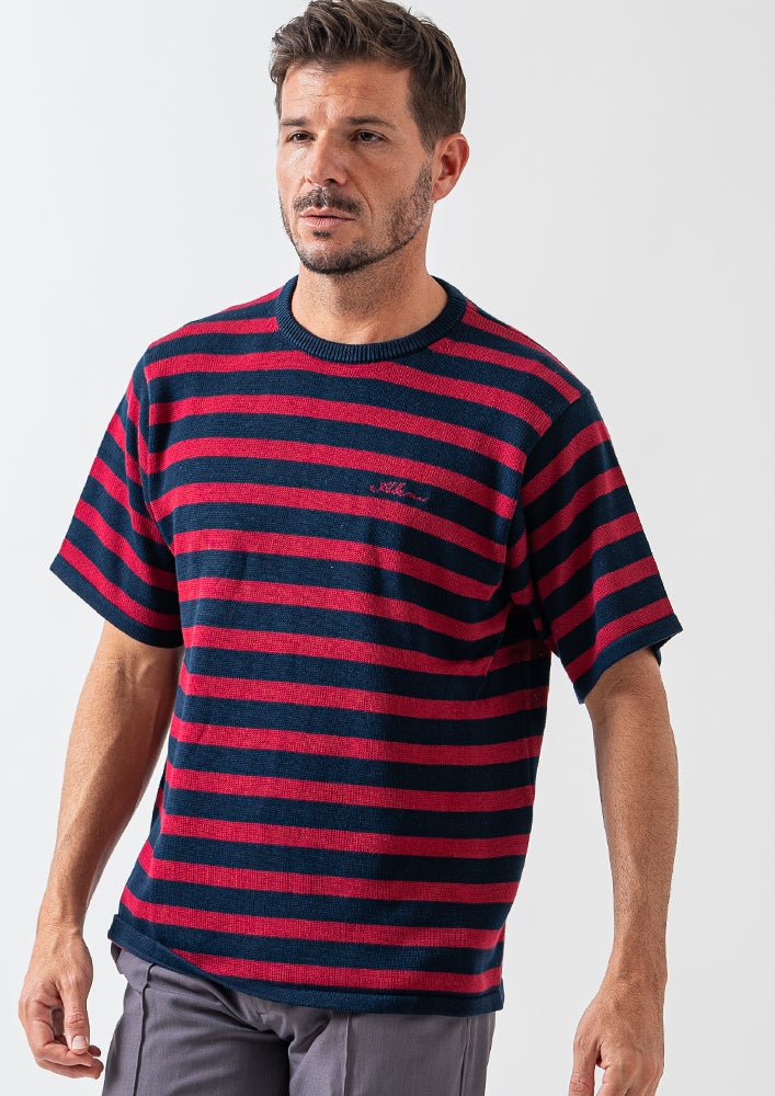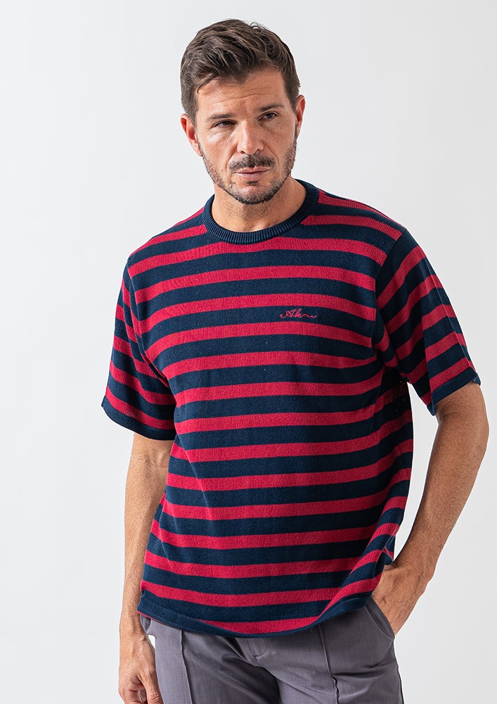 【AKM】PIUMA by Emilcotoni S/S BIG CREW T -NAVY/BURGUNDY-