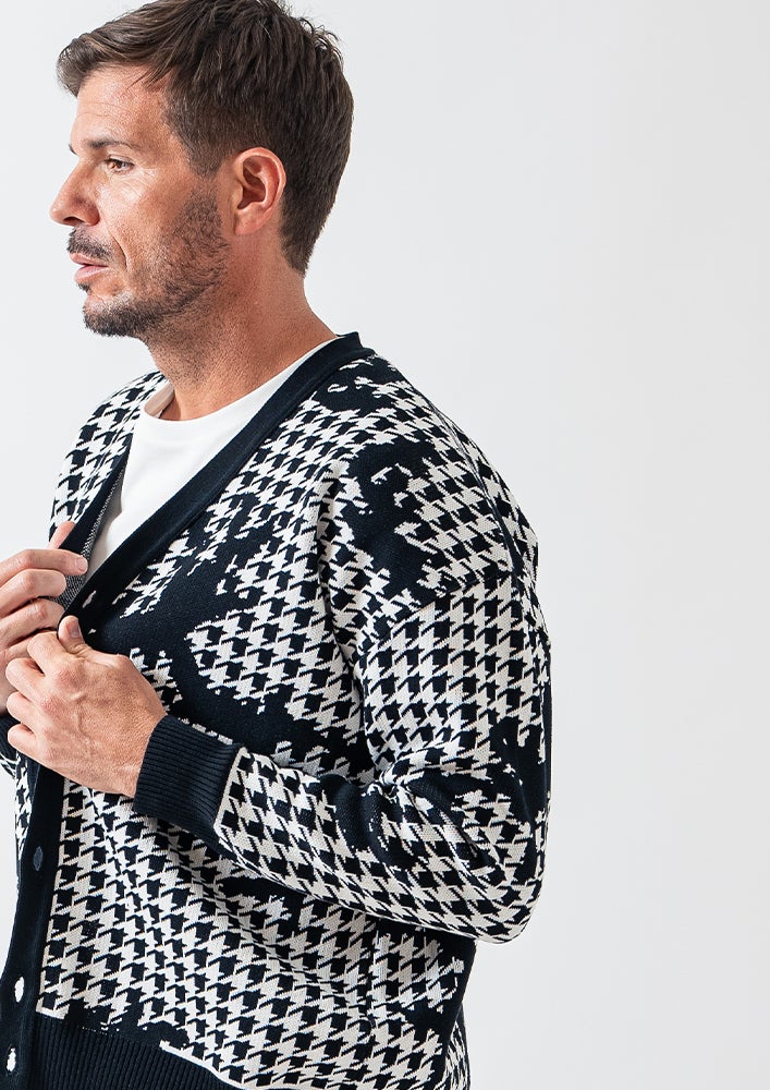 【AKM】DOMINO CAMO DROP SHOULDER CARDIGAN -BLACK CAMO-