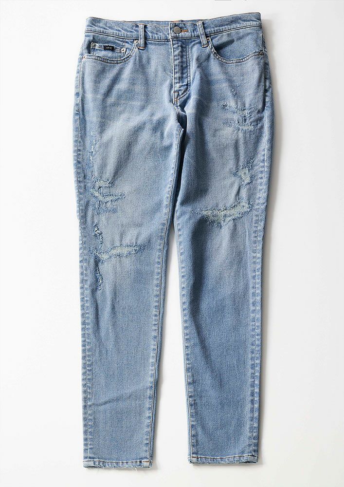 【 P323 / HIGH POWER STRETCH DAMAGED 5POCKET SKINNY DENIM -BLUE HARD USED- 】