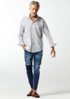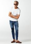 今季はクラッシュ&リペア加工を施し、ホワイトとブラックはワンウォッシュ+立体ヒゲ、インディゴはハードユーズド加工を施しています。