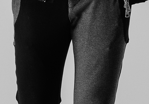 十分に伸縮性を持たせることと生地の厚みを出すために、生地プレセットせずに横方向の送り込みをしており、また仕上げ時にタンブラー乾燥して 縦および横方向に密な収縮状態をキープしています。それ故にカットソー素材でありながら横だけでなく縦方向にも十分なストレッチ性があります。 企画が始まって以来ずっと奈良の編み工場にて編み続けているこの生地は、その強力なストレッチのため染色加工の段階でかなりのシワが入ってしまうのを泉州の染色工場が何度も時間をかけて仕上げることでシワを伸ばし生地に仕上げています。 プリントもずっと泉州のプリント工場で加工しており、安定的なクオリティを保証します。今季は無地の杢チャコールグレー、黒の2色、無地2色のクレイジー仕様、無地と同系色のAKMオリジナルスウェディッシュカモのクレイジー仕様をそれぞれご提案します。