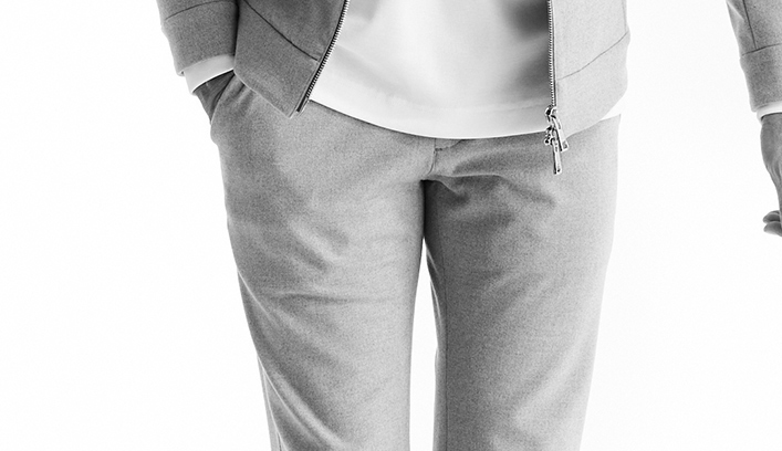 EASYテーパードスラックス型をご提案します。タックは無しで裾はシングル仕上げにすることでスッキリとした美脚シルエットです。