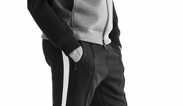 ZIPはAKMオリジナル引手付のビスロンファスナーを採用し、左モモの「AKM」ワンポイント刺繍など細部にも抜かりなくスポーティーに仕上げています。