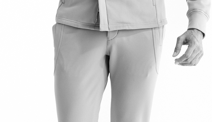 裾にリブを使用せず、表地共地にすることでミニマルに仕上げています。