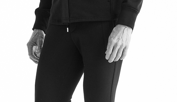 裾にリブを使用せず、表地共地にすることでミニマルに仕上げています。