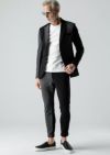 AKM定番のSWING EASY SET-UP。パッチポケットが特徴的なシングルノッチドラペルジャケットと定番のEASYテーパードスラックスです。 過去にLEON誌タイアップにて発表したモデル同様、発熱効果のあるポンチ素材を採用し、 一枚仕立てで軽量に仕上げながらもウォーム効果がある素材を採用することで、秋冬仕様へと昇華しています。 ストレッチ性にも富んでいるので快適な着用感を保証します。釦は AKM 定番の本水牛六穴釦です。 今期はパンツの裾をダブル仕上げにてご提案します。
