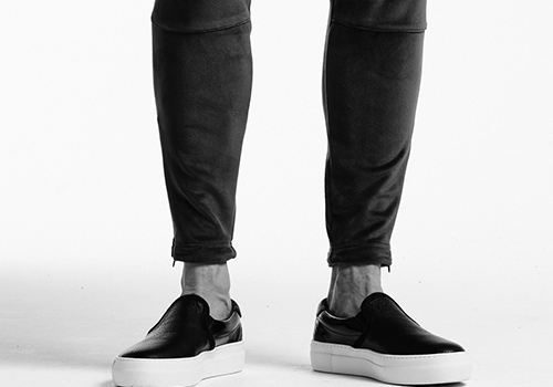 足首を細く、足全体を美しく見せるべく誕生した美脚シルエットのAKM定番スキニーパンツの登場です。裾巾を極限まで細く設定していながらもコンシールファスナーを搭載することで着脱し易くしています。また、膝上の両脇にライン状の配色切替をし、デザインのアクセントにしています。