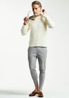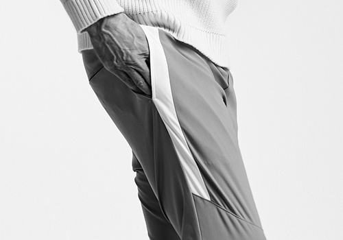 また、膝上の両脇にライン状の配色切替をし、デザインのアクセントにしています。