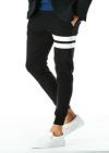 素材の特性や穿き心地を重視し、極力シンプルに仕上げながらも、左モモの二本ラインをアクセントにしています。