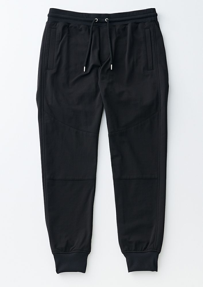 この上ない美シルエットが特徴的な定番 EASY RIB PTにバイカースキニーパンツの膝上の切替デザインを追加した今作。
