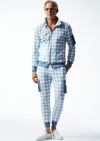 【表地】ポリエステルの強撚糸を使用したダンボールニットにAKMオリジナルの千鳥柄をインクジェットプリントにて表現しました。