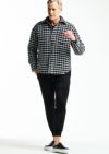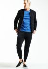 ウエスト紐付き、裾リブ仕様のイージーパンツです。定番のSWING EASYパンツよりもヒップ、ワタリを若干大きく設定していますが、美シルエットはそのままに仕上げています。前身にのみセンタークリース(縦の切替線)を採用し、クラシックとモダンを掛け合わせたデザインです。