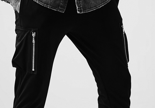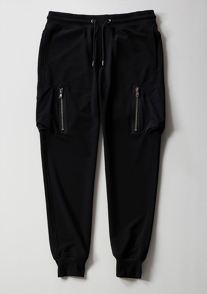 この上ない美シルエットが特徴的な定番 EASY RIB PTにZIPカーゴポケットを追加した今作。