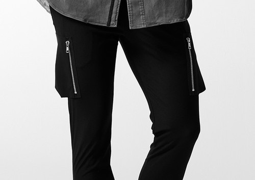 この上ない美シルエットが特徴的な定番 EASY RIB PTにZIPカーゴポケットを追加した今作。
