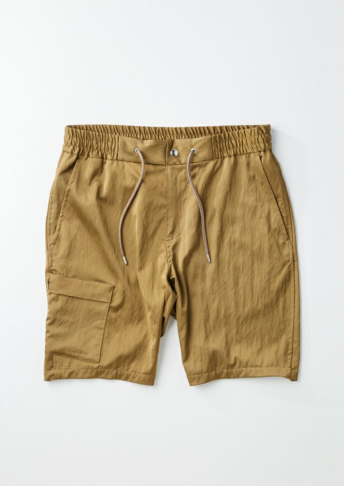 【P261 / SEER SATIN ONE SIDE CARGO SHORTS -KHAKI-】