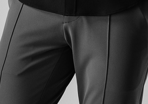 前身にのみセンタークリース(縦の切替線)を採用し、クラシックとモダンを掛け合わせたデザインです。