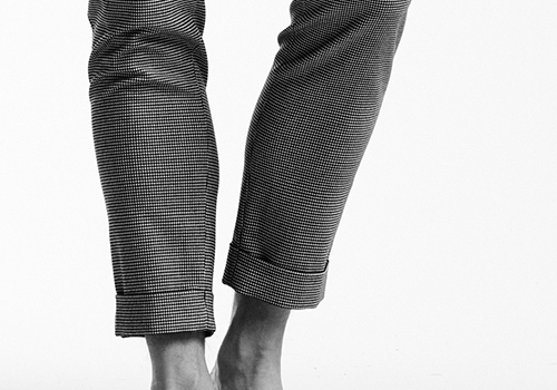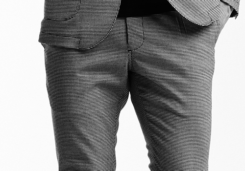 厳選した各表地はストレッチ性に富んでおり快適な着用感を保証します。釦は AKM 定番の本水牛六穴釦です。今期はパンツの裾をダブル仕上げにてご提案します。