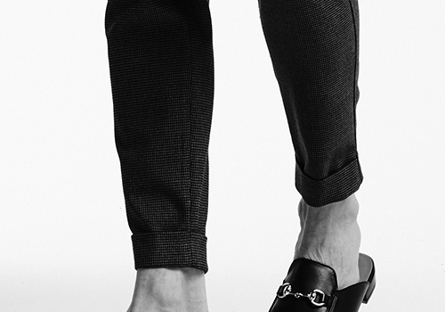 厳選した各表地はストレッチ性に富んでおり快適な着用感を保証します。釦は AKM 定番の本水牛六穴釦です。今期はパンツの裾をダブル仕上げにてご提案します。