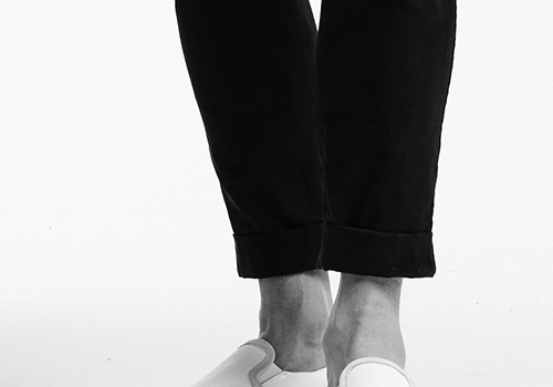 厳選した各表地はストレッチ性に富んでおり快適な着用感を保証します。釦は AKM 定番の本水牛六穴釦です。今期はパンツの裾をダブル仕上げにてご提案します。
