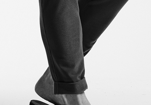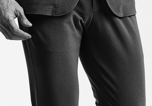 厳選した各表地はストレッチ性に富んでおり快適な着用感を保証します。釦は AKM 定番の本水牛六穴釦です。今期はパンツの裾をダブル仕上げにてご提案します。