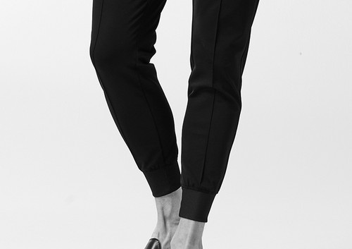 【 P348 / CNP066 / COTTON COMPRESSION PONTI RIB SLACKS -BLACK- 】