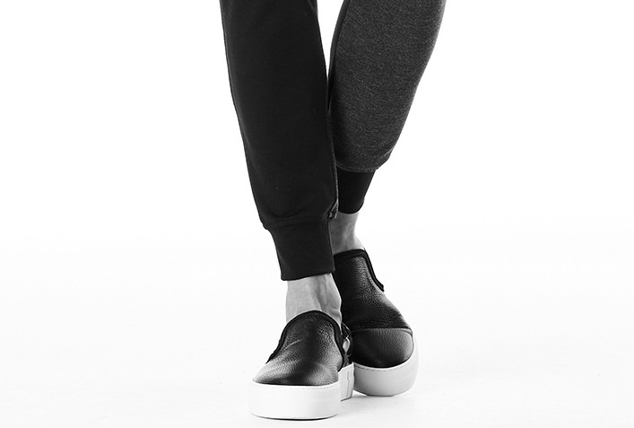 素材の特性や穿き心地を重視し、極力シンプルに仕上げながらも、左モモの二本ラインをアクセントにしています。