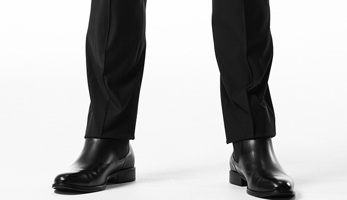 タイトストレート型はタックを無くし、股上を浅くし、センタークリースを追加することで、シャープな美しいシルエットを完成させました。