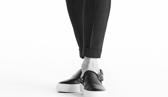 ヒップからワタリにかけて、ゆとりを持たせ裾にかけてテーパードさせ、リラックス感とシャープさを兼ね備えたシルエットに仕上げています。
