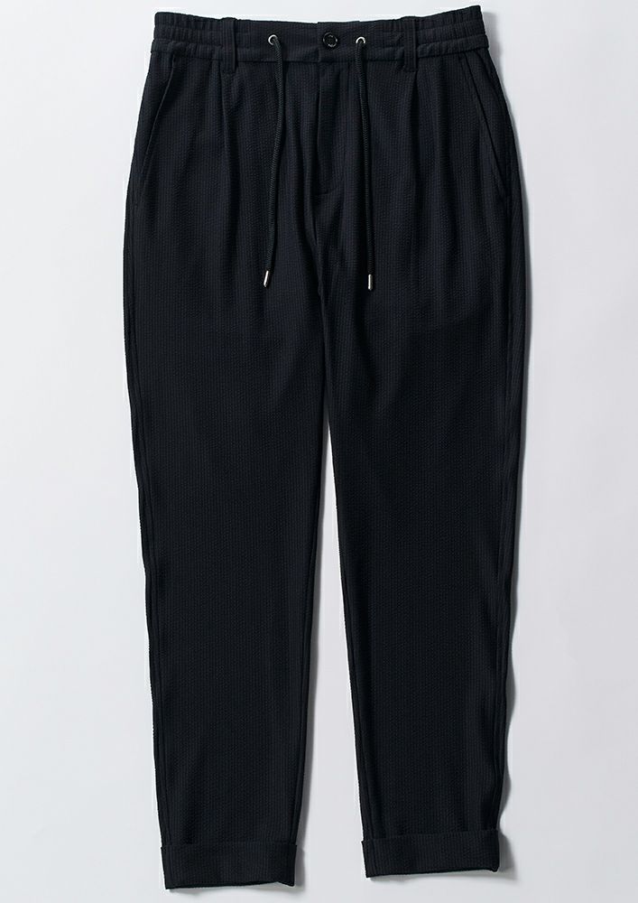 【 P344 / PET151 / TORICOT SUCKER SWING EASY PANTS -BLACK- 】