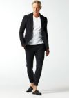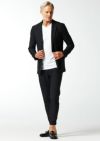 トレッチ性にも富んでいるので快適な着用感を保証します。釦は AKM 定番の本水牛六穴釦です。今期はパンツの裾をダブル仕上げにてご提案します。