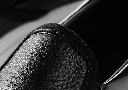 イタリア、MASTROTTO社のシボ革、エナメル革、スウェードと異なる本牛革をパーツで使い分け、同色コンビながら奥行きのある面持ちです。